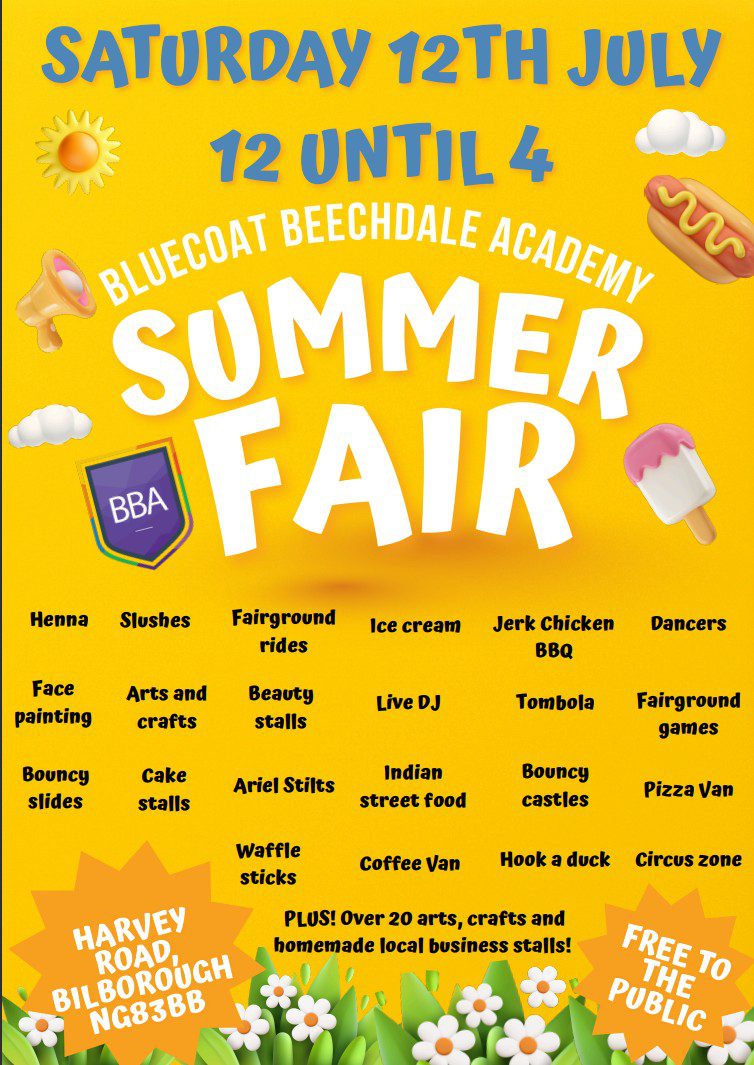 We’re thrilled to invite you to our School Summer Fair — a vibrant day of fun, food, and family-friendly entertainment right here at Bluecoat Beechdale Academy!